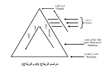 3- الوسط (الحدث الصاعد) الصراع، الأزمة، التعقيد، الذروة: